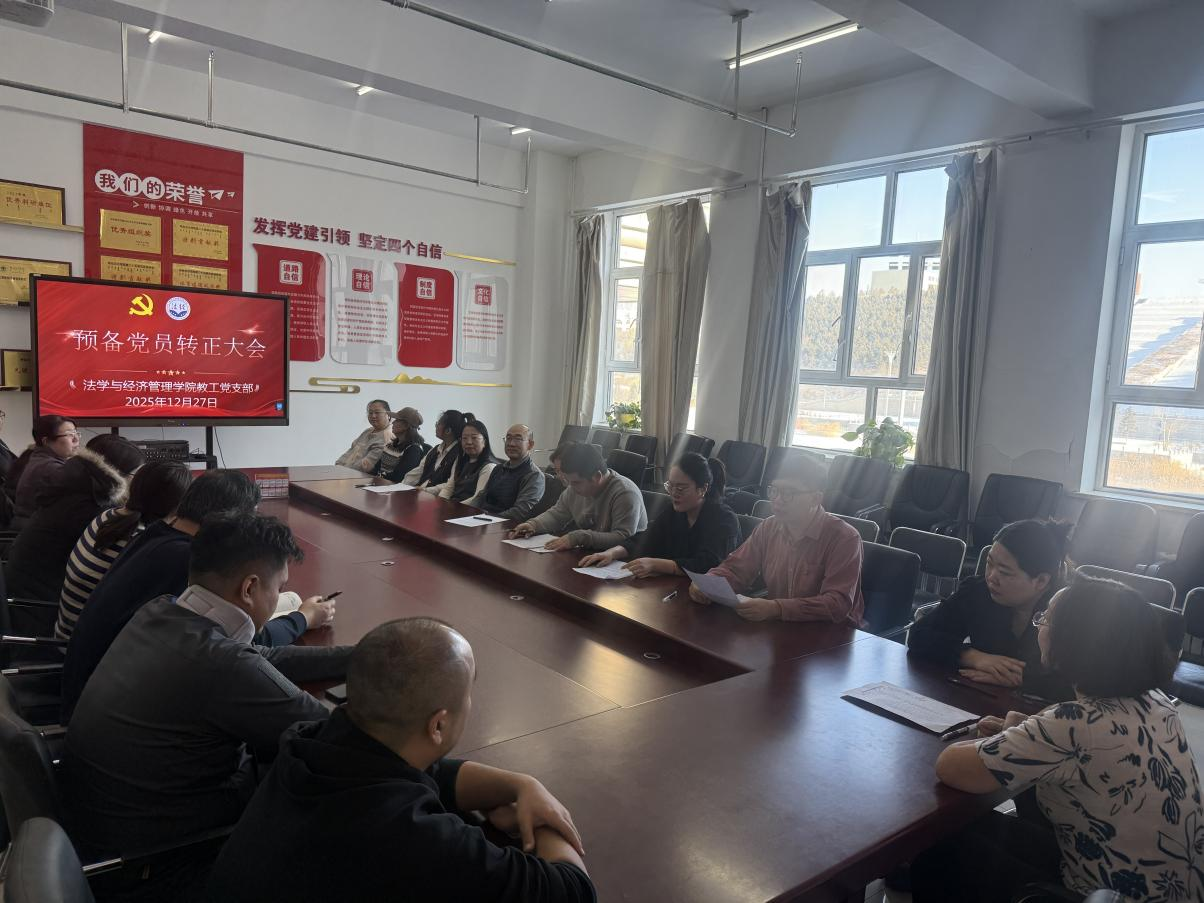 为持续夯实党员队伍建设根基,充实基层党建力量,增强党组织的凝聚力与战斗力,12月27日上午,法学与经济管理学院教工党支部在崇文楼A308会议室召开党员大会,专题讨论预备党员贺笑捷同志转正问题。会议由教工党支部书记王攀先同志主持,支部全体党员参会。