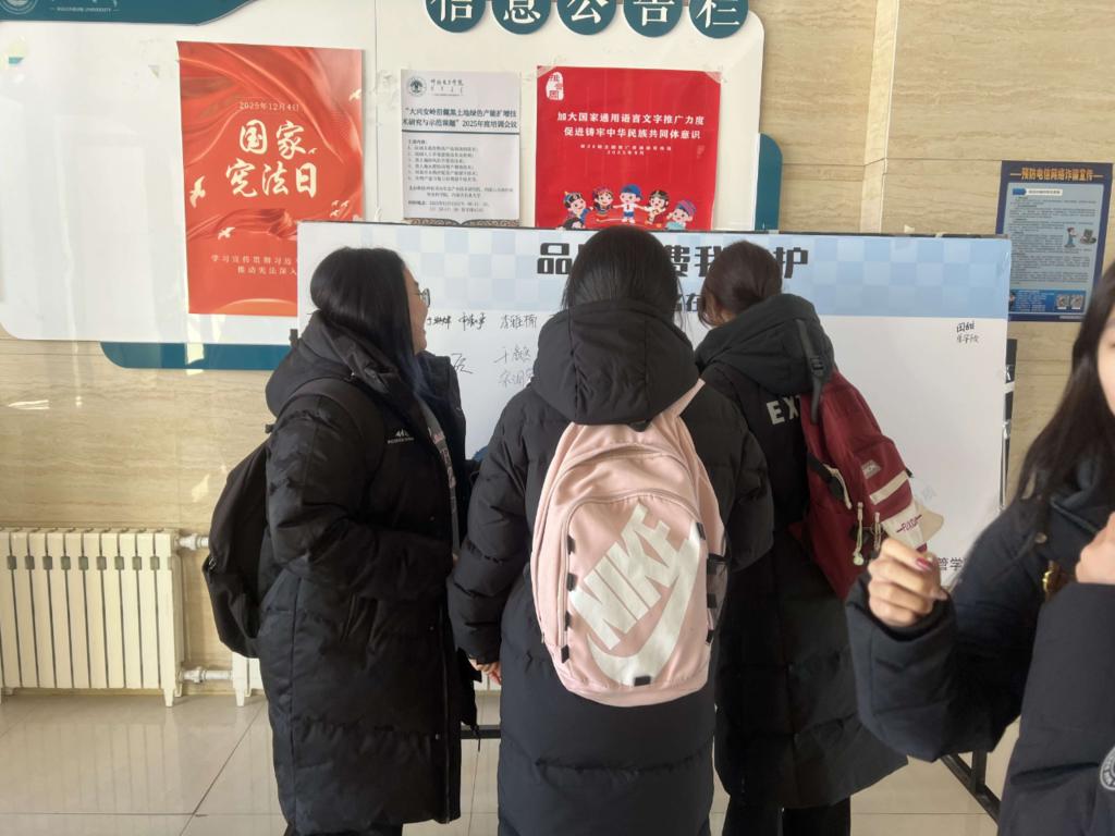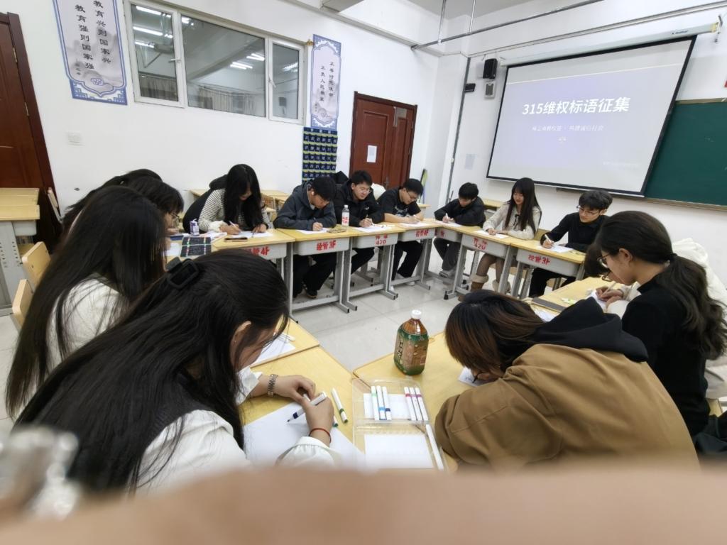 然后在3月13日,法学社组织了“315维权签名”活动。同学们以签名为诺,以行动为证,充分展现了法学社的专业担当。这场活动不仅丰富了校园法治文化的内涵,更如一剂强力的“预防针”,让每一位参与者都对消费风险保持警醒,为校园消费环境筑起一道坚实的防线。