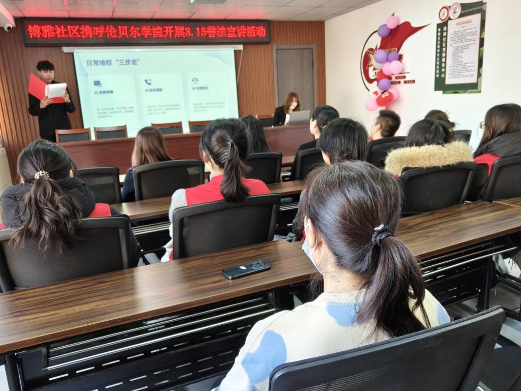 维权的脚步,不应止步于象牙塔内。3月16日,法学社将目光投向更广阔的社会,在爱民社区与博雅社区开展校外演讲活动。社员们以生动的语言向居民普及维权途径与方法,将法治的光芒播撒到社区的每一个角落,彰显了法学社“心系社会、服务大众”的责任担当。